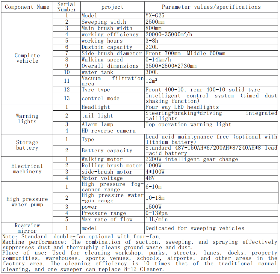 기계 성능: 흡입, 쓸기, 분사의 조합으로 먼지를 효과적으로 억제하고 지상 폐기물과 먼지를 철저하게 청소합니다.