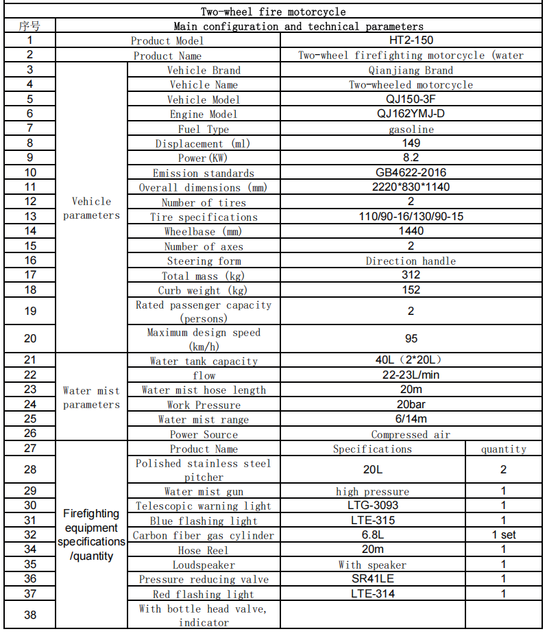 차체는 작으며(보통 길이 약 2m, 폭 약 0.8m) 좁은 거리, 구도심 골목, 보행자 거리, 경치 좋은 산길, 도시 마을 및 기타 대형 소방차가 도달할 수 없는 지역을 쉽게 왕복할 수 있어 "라스트 마일"의 화재 보호 범위 문제를 해결합니다.